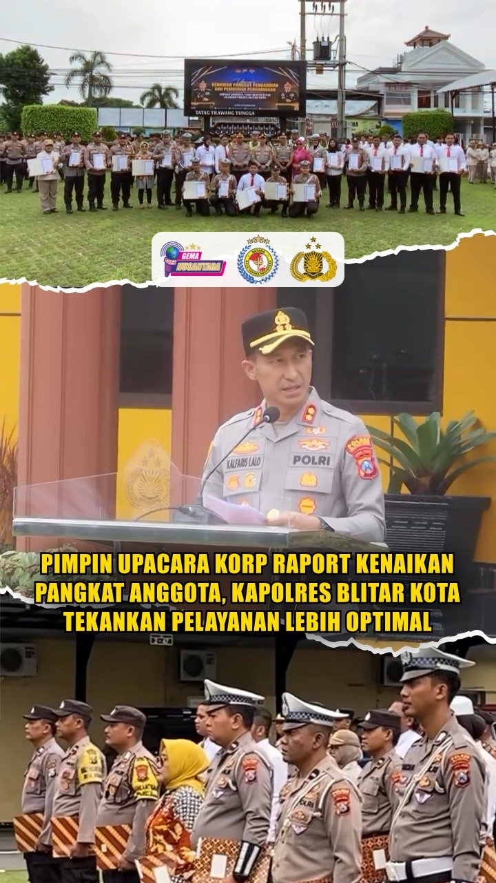 Blitar Kota – Rasa bangga dan haru menyelimuti Upacara Korp Raport Kenaikan Pangkat Pengabdian serta Pemberian Piagam Penghargaan anggota Polres Blitar Kota yang digelar di Halaman Apel dan dipimpin langsung oleh Kapolres Blitar Kota AKBP Kalfaris Triwijaya Lalo, S.I.K., M.I.K. Selasa 24 Februari 2026.