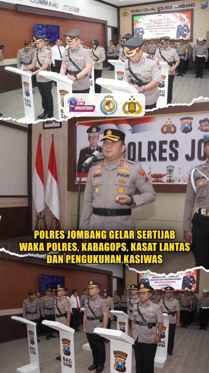 Jombang – Polres Jombang menggelar upacara serah terima jabatan (sertijab) Wakapolres, Kabagops, Kasat Lantas serta pengukuhan jabatan Kasiwas, di Ruang Jombang Command Center Mapolres Jombang. Kamis (15/1/2026). Dipimpin langsung Kapolres Jombang AKBP Ardi Kurniawan, S.H., S.I.K., CPHR, dan diikuti o jajaran pejabat utama, para Kapolsek, serta anggota yang ditunjuk.