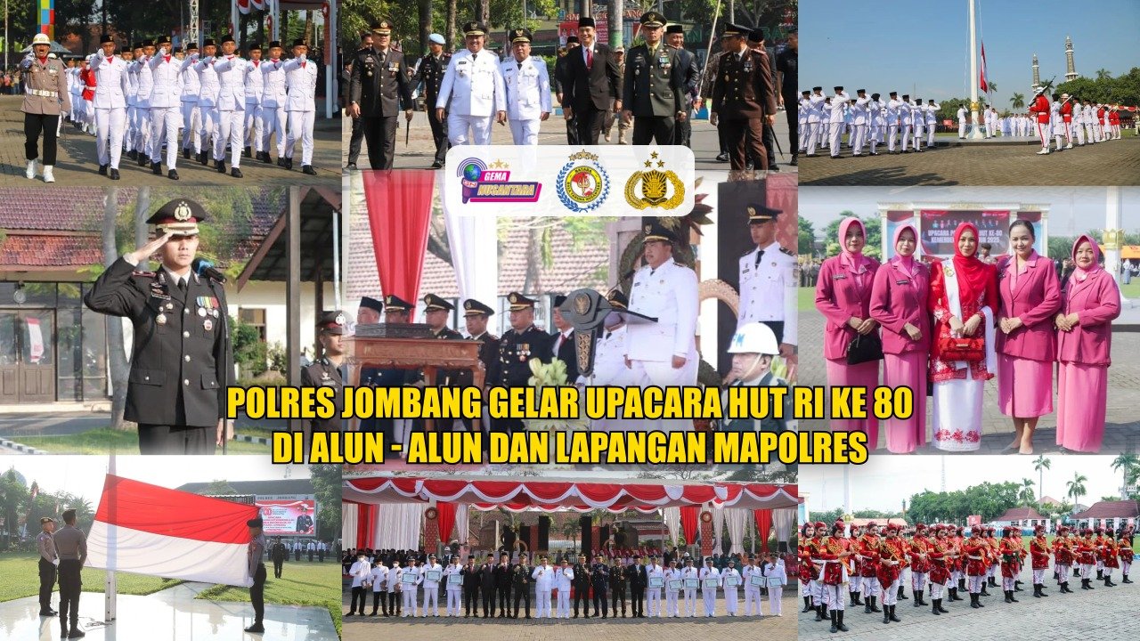 Polres Jombang Gelar Upacara HUT RI ke 80 di Alun – Alun Dan Lapangan Mapolres.