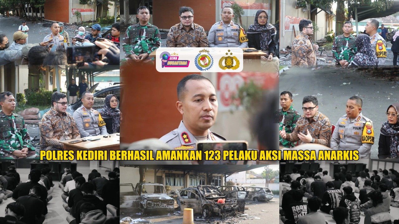 Kediri – Polres Kediri mengamankan sedikitnya 123 orang dari berbagai kalangan usia, mulai pelajar hingga orang dewasa yang diduga terlibat aksi anarkis saat unjuk rasa di wilayah Kabupaten Kediri pada Sabtu malam (30/8/2025) yang berujung pada pembakaran sejumlah fasilitas pemerintahan, termasuk Gedung DPRD Kabupaten Kediri, Kantor Pemkab Kediri, hingga pelemparan batu kepada beberapa kantor Polsek.