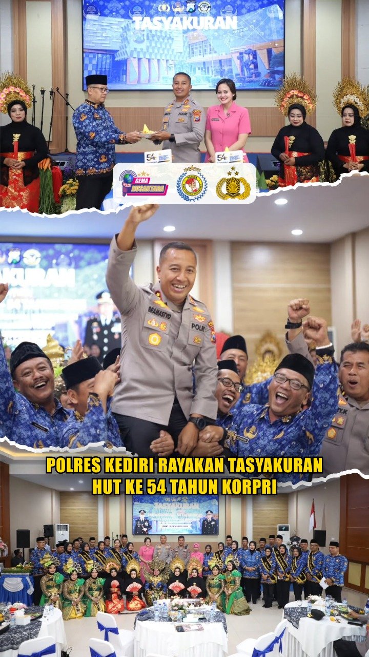 Kediri – Kapolres Kediri AKBP Bramastyo Priaji, S.H., S.I.K., M.Si. bersama Ketua Bhayangkari Cabang Kediri Ny. Ratih Bramastyo menghadiri kegiatan Tasyakuran HUT Ke-54 tahun 2025 Korpri yang digelar di Aula Wicaksana Laghawa Mapolres Kediri, Rabu (10/12/2025). Di isi dengan berbagai pertunjukan dari para ASN Polres Kediri sekaligus mempererat kebersamaan antar anggota.