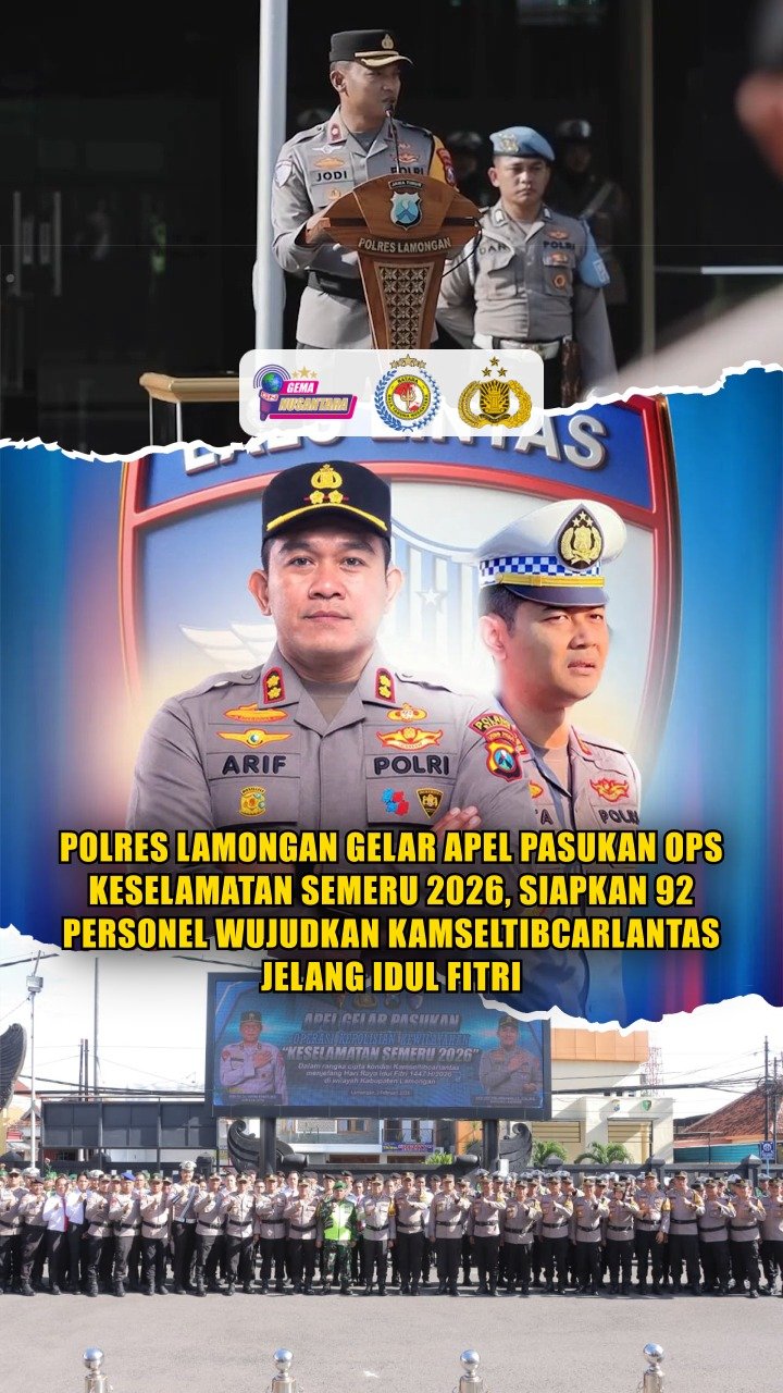 Polres Lamongan Gelar Apel Pasukan Ops Keselamatan Semeru 2026, Siapkan 92 Personel Wujudkan Kamseltibcarlantas Jelang Idul Fitri