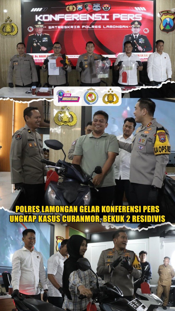 Polres Lamongan Gelar Konferensi Pers Ungkap Kasus Curanmor, Bekuk 2 Residivis
