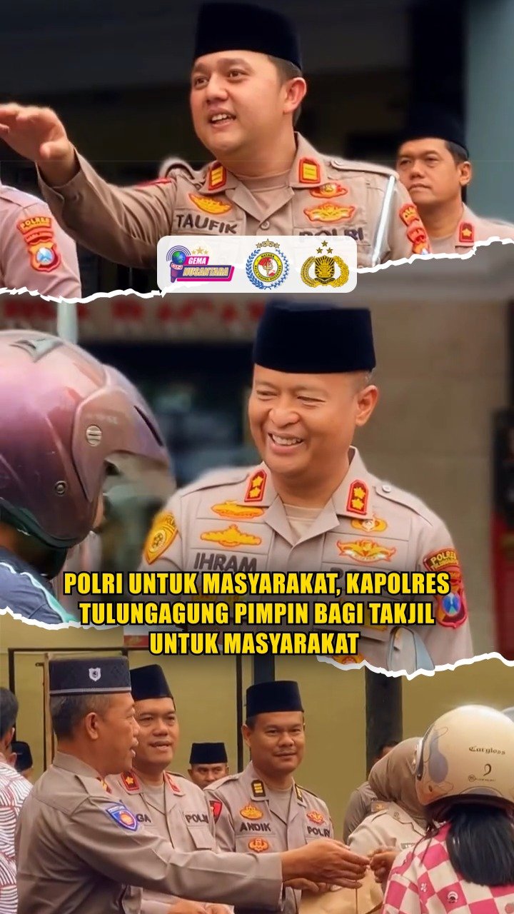 Tulungagung – Kapolres Tulungagung AKBP Dr. Ihram Kustarto, S.H., S.I.K., M.Si., M.H., di dampingi Ketua Bhayangkari Cabang Tulungagung Ny Fika Ihram beserta jajaran personel Polres Tulungagung hadir lebih dekat dengan masyarakat melalui kegiatan berbagi takjil sebagai wujud kepedulian dan kebersamaan.