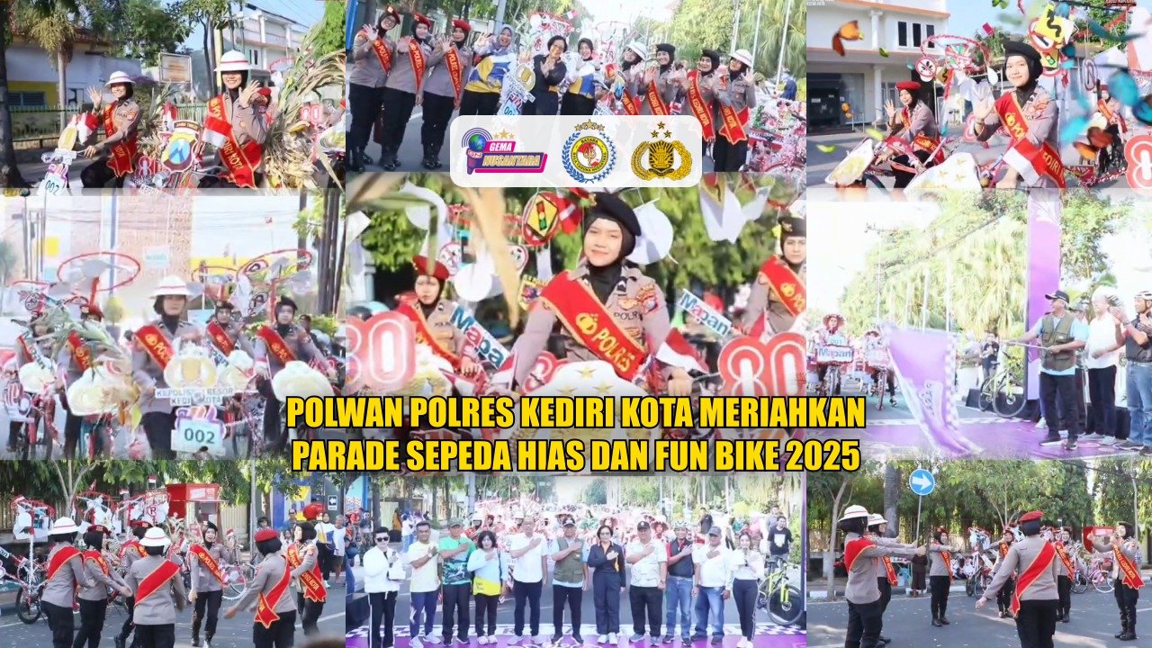 Kediri Kota – Dalam rangka memperingati Hari Kemerdekaan Republik Indonesia ke-80 sekaligus Hari Jadi Kota Kediri ke-1146, Polwan Polres Kediri Kota Meriahkan Parade Sepeda Hias & Fun Bike 2025.