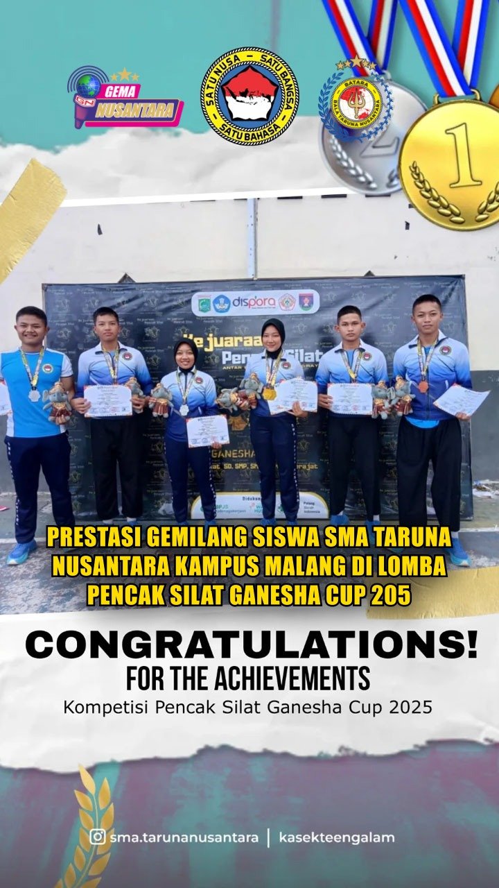 Malang – Bangga! Siswa SMA Taruna Nusantara Kampus Malang menorehkan prestasi gemilang di Lomba Pencak Silat Ganesha Cup 2025, ajang kompetisi tingkat pelajar se-Malang raya.