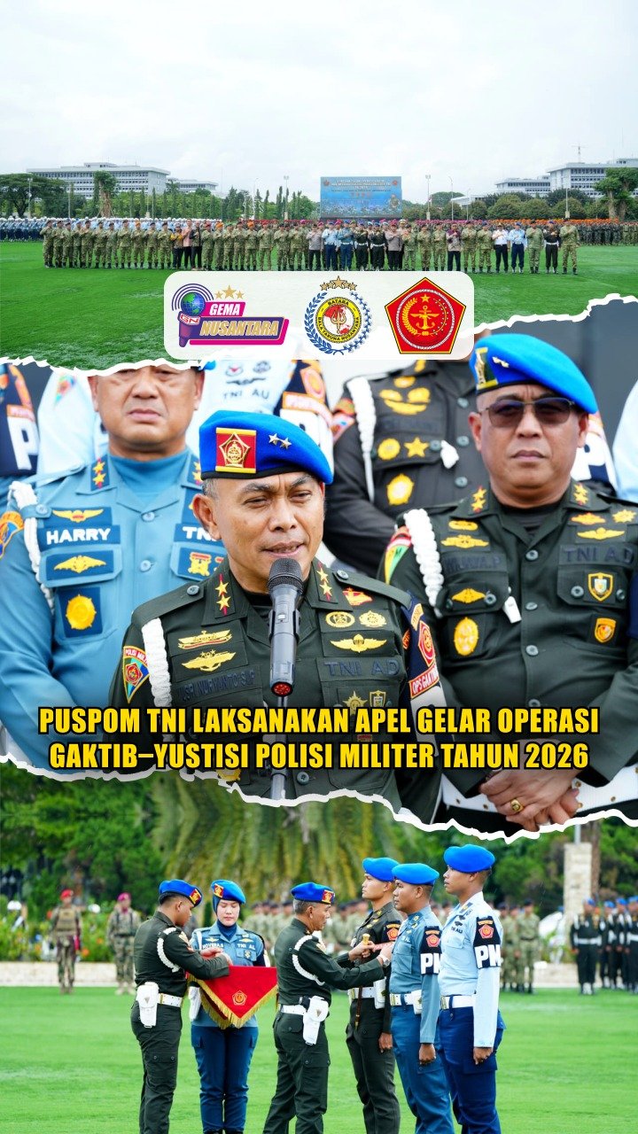 (Puspen TNI). Danpuspom TNI Mayjen TNI Yusri Nuryanto memimpin Upacara Gelar Operasi Penegakan Ketertiban (Gaktib) dan Operasi Yustisi Polisi Militer Tahun 2026, bertema “TNI Prima, Taat Hukum, Berdaulat, Indonesia Maju”, bertempat di Lapangan Prima Mabes TNI, Cilangkap, Jakarta Timur, Jumat (13/2/2026).