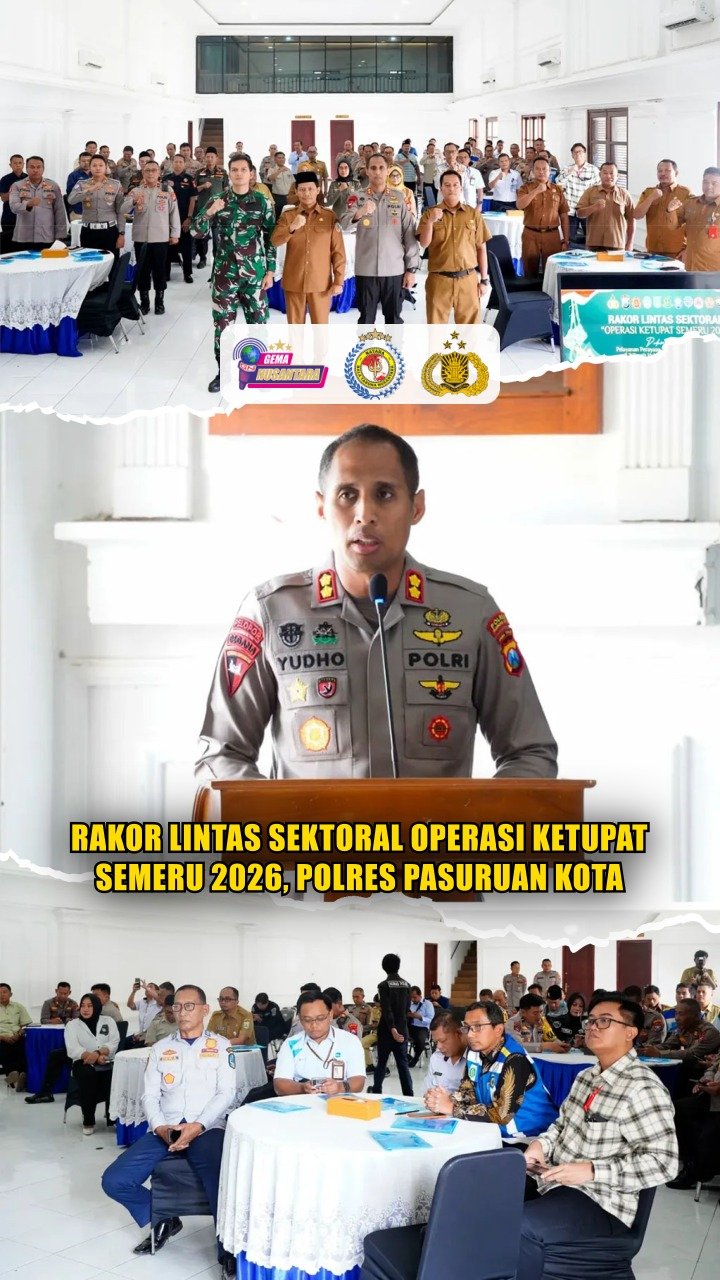 Pasuruan Kota – Dalam rangka perayaan Idul Fitri 1447 H / 2026 M di wilayah hukum Polres Pasuruan Kota, Kapolres Pasuruan Kota AKBP Titus Yudho Uly, S.I.K., M.Si., menggelar Rakor Lintas Sektoral Operasi Ketupat Semeru 2026, bertempat di Gedung Wicaksana Laghawa Polres Pasuruan. 10 Maret 2026.