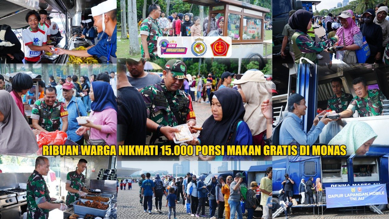 (Puspen TNI). Dalam rangkaian Pesta Rakyat HUT ke-80 TNI, sebanyak 15.000 porsi makanan gratis produk UMKM melalui Dapur Lapangan TNI dibagikan untuk masyarakat Pada Minggu 21 September 2025 di Lapangan Monas. Sebelumnya pada Sabtu, 20 September 2025, sebanyak 3.000 porsi dari UMKM dan 2.000 porsi dari dapur lapangan.