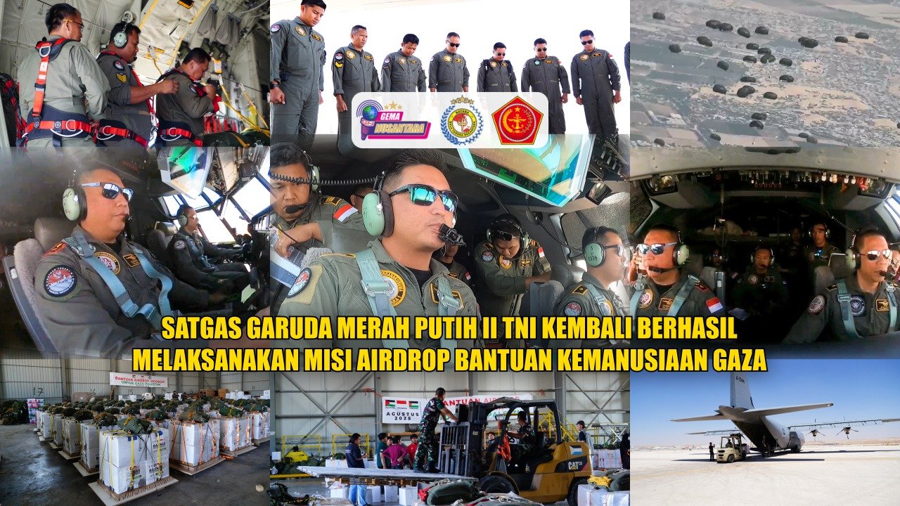Satgas Garuda Merah Putih II TNI kembali berhasil melaksanakan misi airdrop bantuan kemanusiaan Gaza