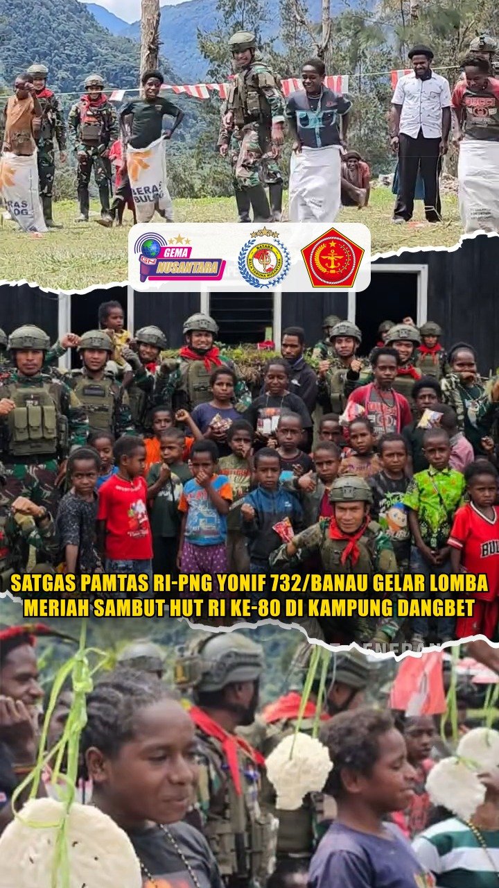 Distrik Beoga Papua – Suasana meriah dan penuh semangat kebangsaan mewarnai Kampung Dangbet, Papua, saat personel Pos Dangbet Satgas Pamtas RI-PNG Mobile Yonif 732/Banauz di pimpin langsung Danpos Dangbet, Lettu Inf Henry Yanuar Emha, S.Tr.(Han)., menggelar berbagai perlombaan tradisional dalam rangka HUT RI ke-80.