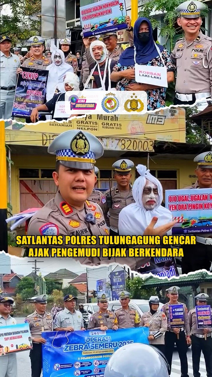 Tulungagung – Satlantas Polres Tulungagung mengajak seluruh pengemudi untuk berkendara dengan bijak.