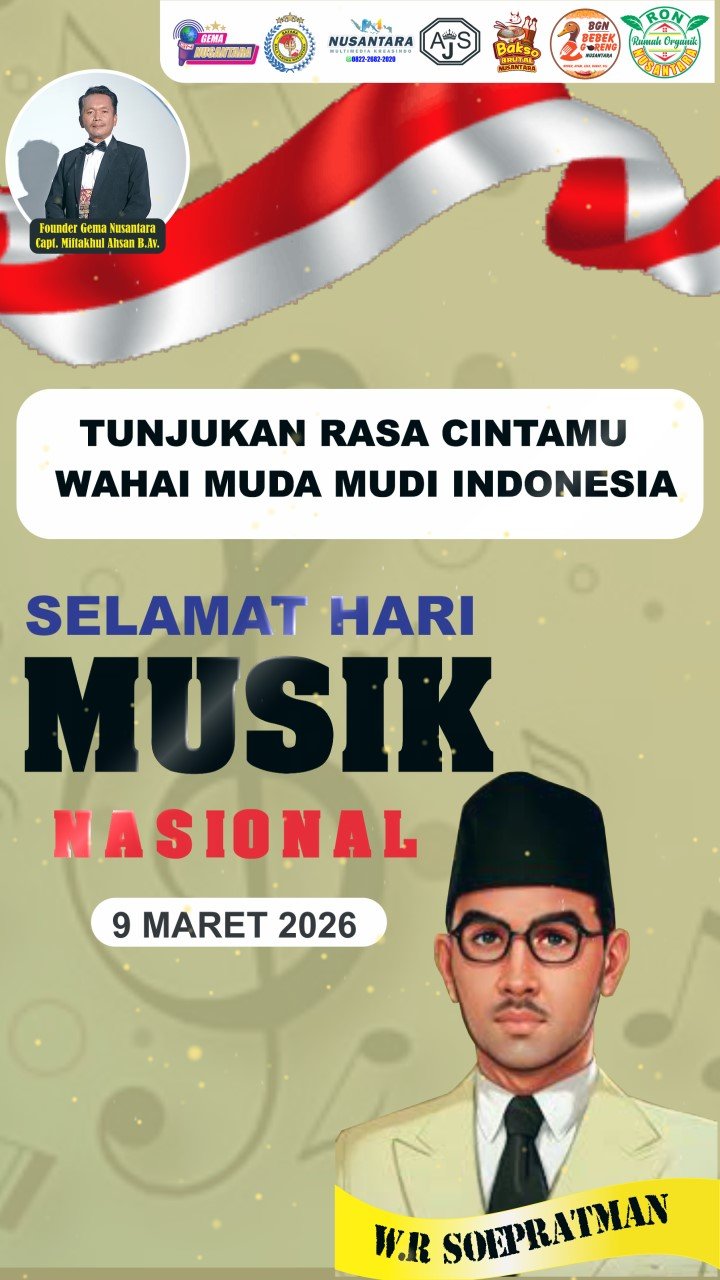 Founder Gema Nusantara Capt. Miftakhul Ahsan B.Av. Dan Keluarga Besar Mengucapkan Selamat Memperingati Hari Musik Nasional, 9 Maret 2026.