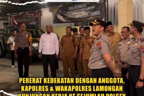 Lamongan – Kapolres Lamongan AKBP Arif Fazlurrahman, S.H., S.I.K., M.Si., bersama Wakapolres Lamongan Kompol Jodi Indrawan, S.I.K., melaksanakan kunjungan kerja ke sejumlah polsek di wilayah hukumnya salah satunya ke Polsek Bluluk, Senin 6 April 2026. Dalam kunjungan tersebut, Kapolres dan Wakapolres meninjau langsung kondisi serta kesiapan personel di masing-masing polsek. Sekaligus memberikan arahan terkait peningkatan…