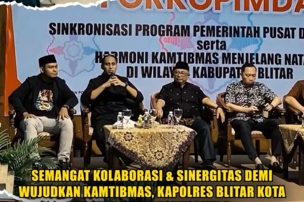 Blitar Kota – Kapolres Blitar Kota AKBP Titus Yudho Uly, S.I.K., M.Si., melaksanakan kegiatan Ngopi Bareng Forkopimda sebagai bagian dari upaya memperkuat komunikasi dan sinkronisasi antara program Pemerintah Pusat dan Pemerintah Daerah, sekaligus meningkatkan harmoni Kamtibmas menjelang perayaan Natal dan Tahun Baru (Nataru) 2025. Kegiatan berlangsung di Pendopo Sasana Adhi Praja, Kantor Pemkab Blitar, dengan…
