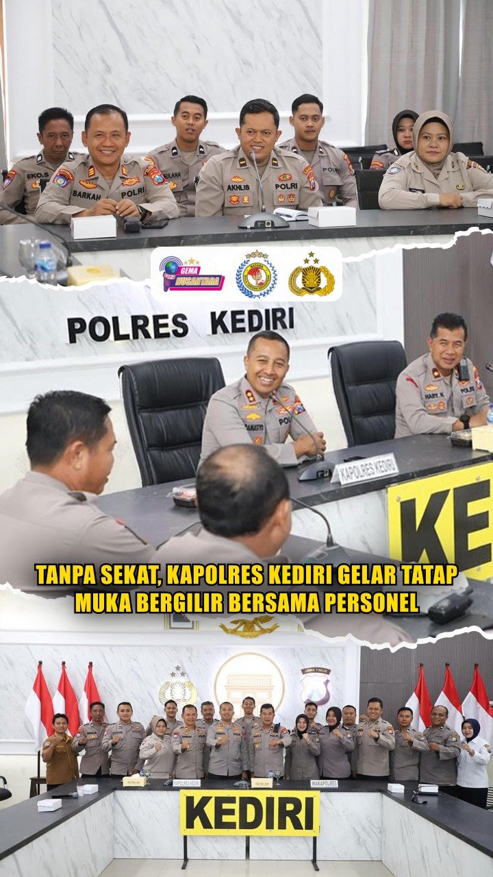 Kediri – Kapolres Kediri AKBP Bramastyo Priaji, S.H., S.I.K., M.Si., melaksanakan kegiatan tatap muka bersama personel Satbinmas, Sattahti, dan Sikum Polres Kediri. Kamis, 13 November 2025. Merupakan agenda rutin yang dilaksanakan secara bergilir sebagai bentuk komitmen untuk mengenal lebih dekat setiap personel.