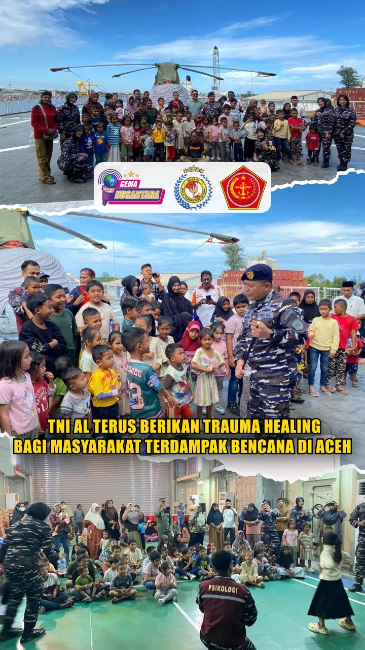 Puspen TNI – TNI AL melalui Dinas Psikologi Angkatan Laut (Dispsial) melaksanakan kegiatan Trauma Healing bagi masyarakat terdampak bencana di wilayah Aceh Tamiang, Aceh Timur, dan Lhokseumawe. Sabtu (20/12). Dilaksanakan oleh personel Dispsial TNI AL terdiri dari Tim A dan B yang bergerak secara simultan di beberapa titik lokasi terdampak.