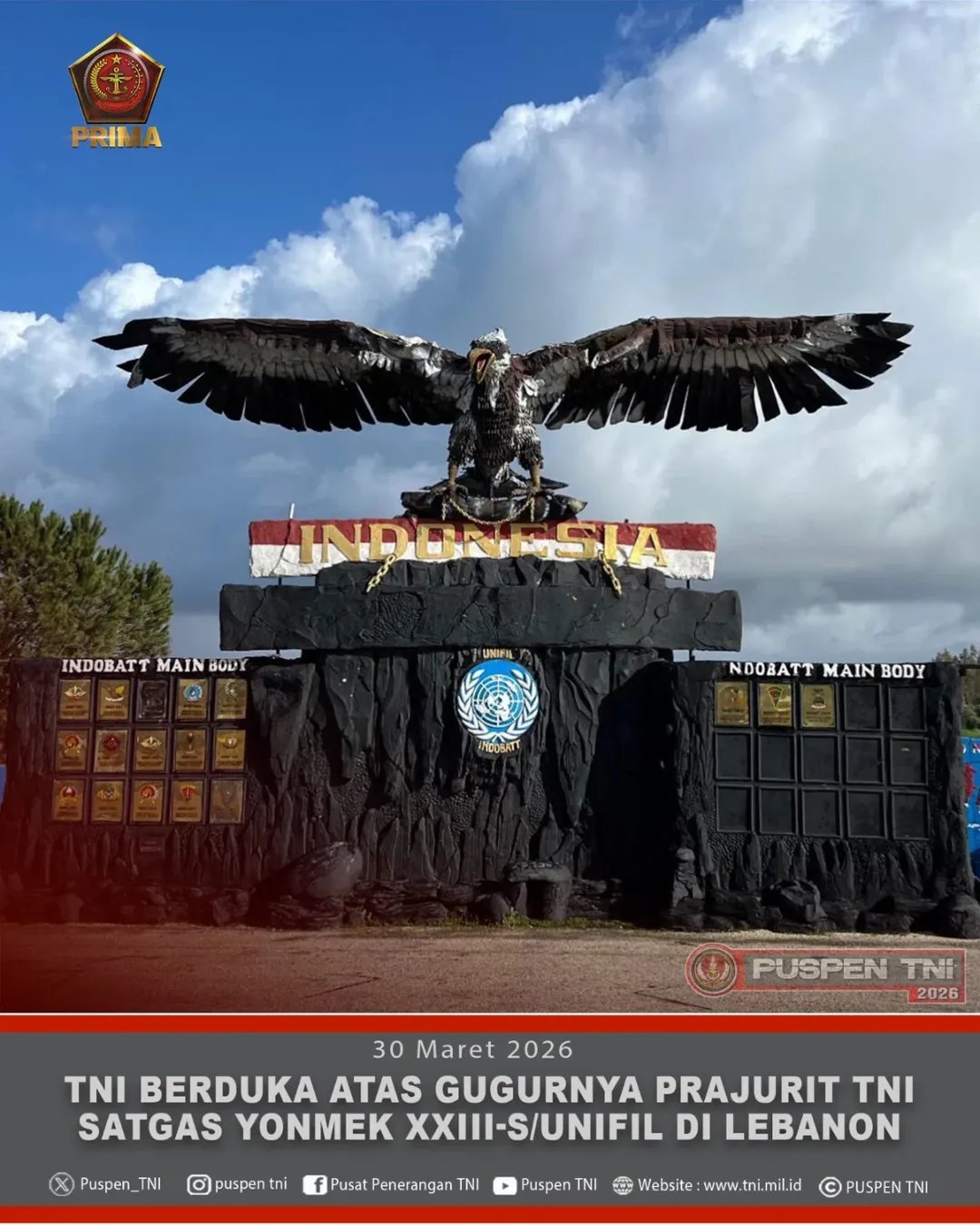 (Puspen TNI). TNI menyampaikan rasa berduka mendalam atas gugurnya satu prajurit TNI serta korban luka yang terjadi karena adanya insiden di daerah penugasan United Nations Interim Force in Lebanon (UNIFIL) akibat eskalasi situasi keamanan pada Minggu, 29 Maret 2026 di Lebanon Selatan.