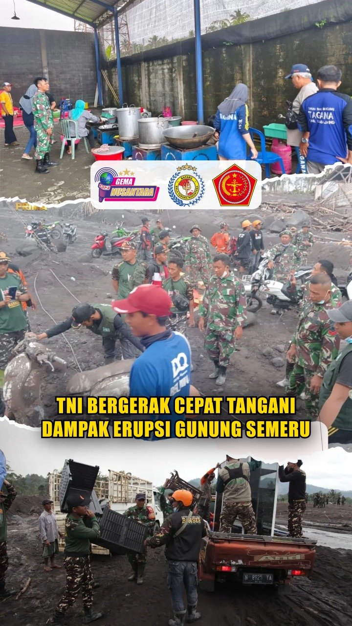 TNI Bergerak Cepat Tangani Dampak Erupsi Gunung Semeru