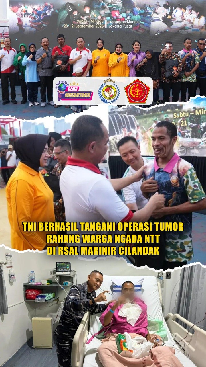 (Puspen TNI). TNI melalui Rumah Sakit Angkatan Laut (RSAL) Marinir Cilandak berhasil melaksanakan penanganan medis bagi Theobaldus Du’a (29 tahun), yang telah menderita tumor rahang selama 15 tahun. Seorang petani dan buruh bangunan dari Kabupaten Ngada NTT.