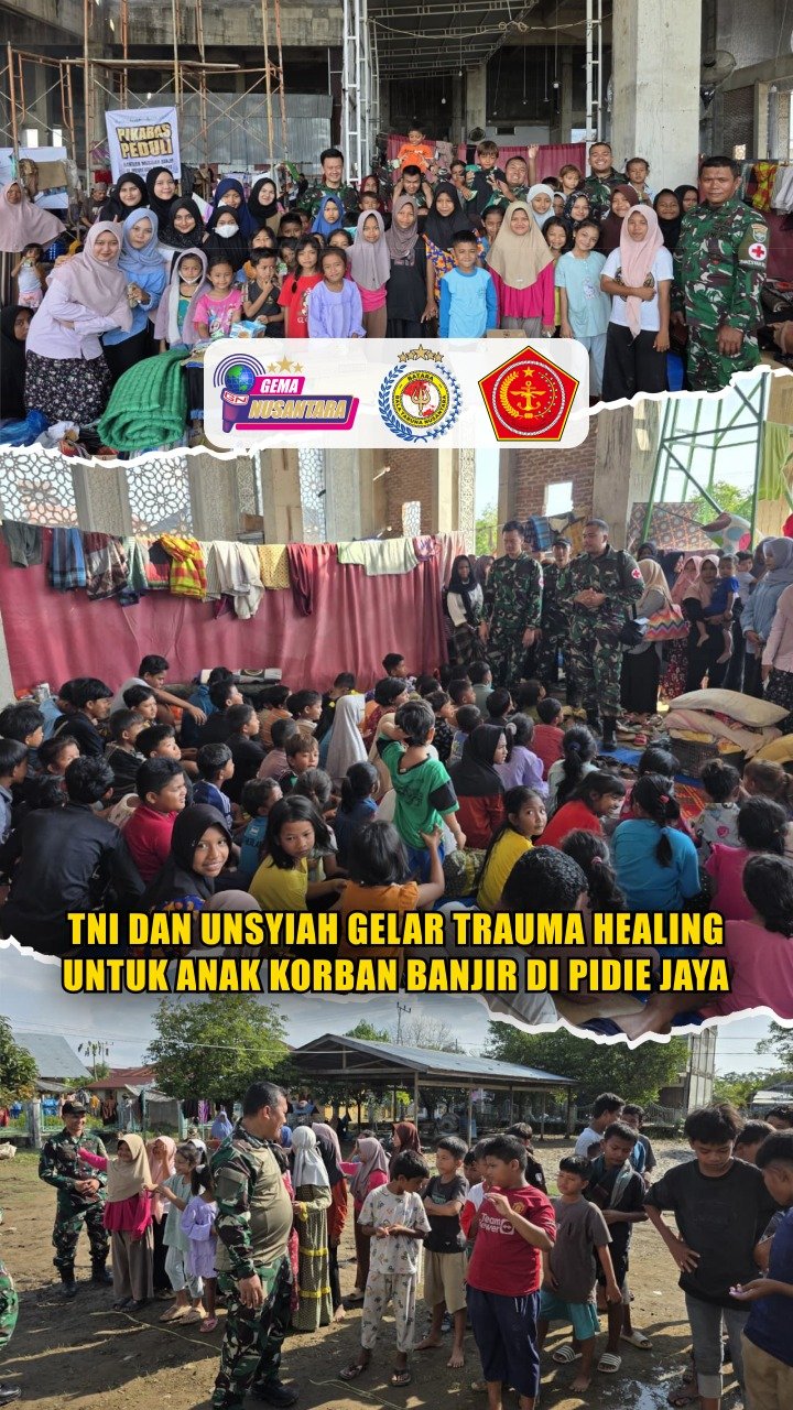 (Puspen TNI). Bekerja sama dengan Tim Praktik Umum dan Terapeutik Belajar (Patubel) Universitas Syiah Kuala, Tim Kesehatan Gabungan (Timkes) Kesdam IM melaksanakan kegiatan trauma healing bagi anak-anak korban banjir di Gampong Meunasah Balek, Kecamatan Meureudu, Kabupaten Pidie Jaya, Senin (8/12/2025).