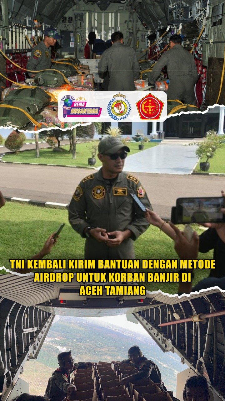 TNI Kembali Kirim Bantuan Dengan Metode Airdrop untuk Korban Banjir di Aceh Tamiang