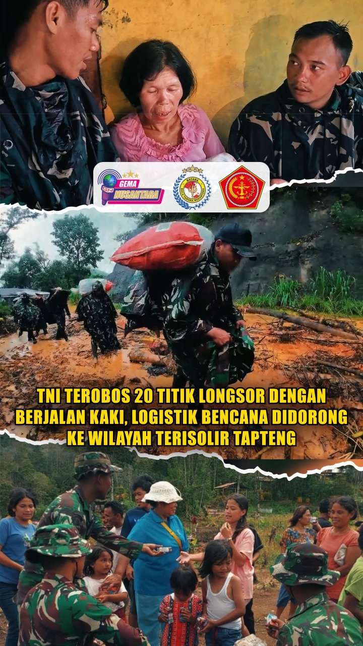 TNI Terobos 20 Titik Longsor Dengan Berjalan Kaki, Logistik Bencana Didorong ke Wilayah Terisolir Tapteng
