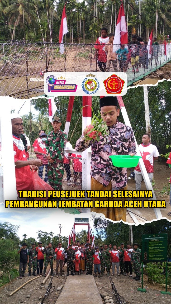 Pendam IM – Suasana khidmat dan penuh rasa syukur mewarnai kegiatan pesejuk sekaligus peresmian Jembatan Gantung Garuda yang berlokasi di Desa Gampong Tengoh, Kecamatan Sawang, Kabupaten Aceh Utara, 24 Februari 2026. Jembatan tersebut menjadi sarana penghubung vital antara Desa Gampong Tengoh, Kecamatan Sawang, Kabupaten Aceh Utara dengan Desa Blang Gurun, Kecamatan Gandapura, Kabupaten Bireuen. Turut dihadiri oleh sejumlah pejabat dan tokoh masyarakat.