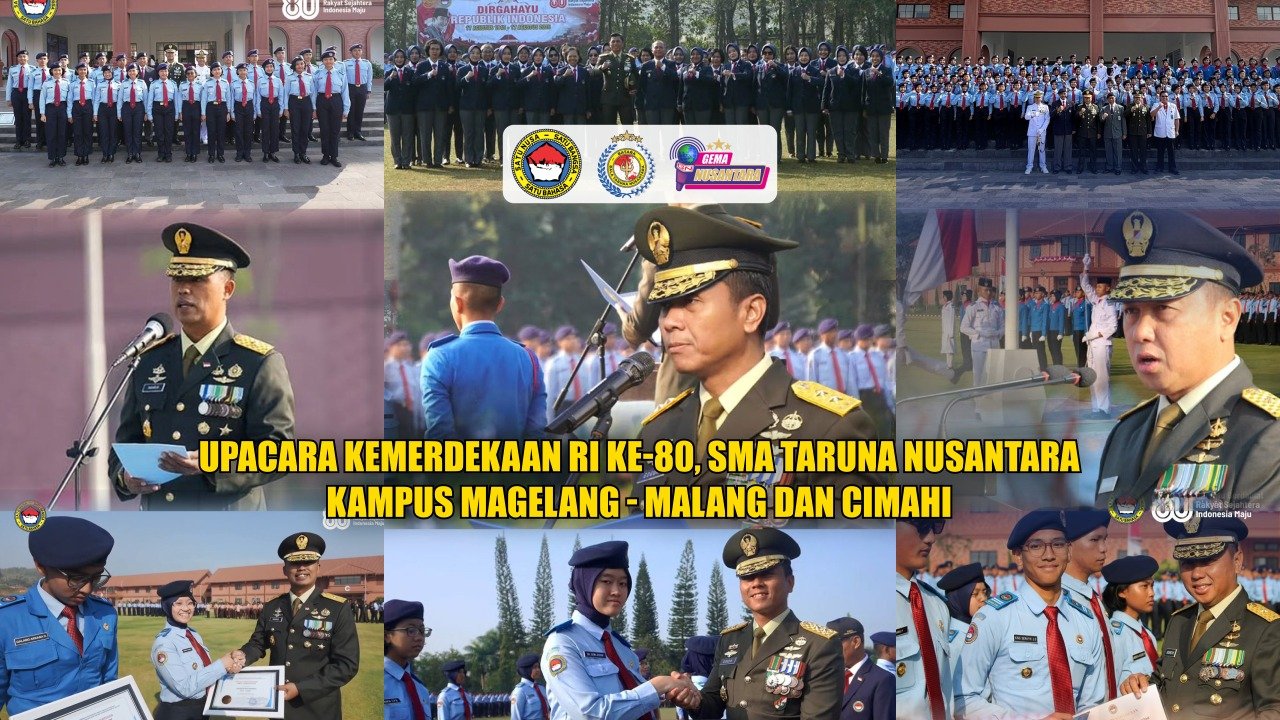 SMA TN – SMA Taruna Nusantara Magelang, Malang, dan Cimahi melaksanakan upacara bendera dalam rangka memperingati Hari Kemerdekaan RI Ke-80 di lapangan sekolah masing-masing. Diikuti seluruh Siswa, Pengurus, Pamong, peserta Supercamp dan Komite Sekolah.