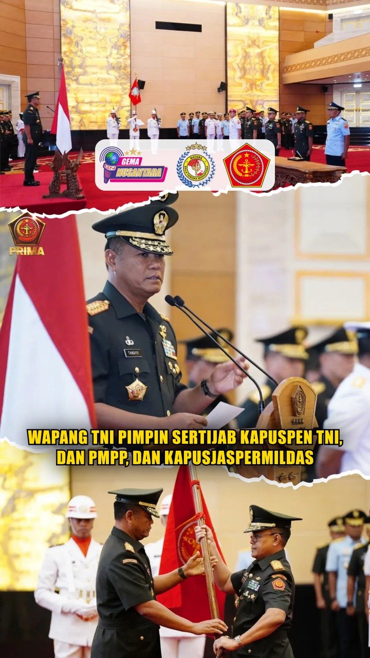 (Puspen TNI). Wakil Panglima TNI Jenderal TNI Tandyo Budi Revita, S.Sos., mewakili Panglima TNI Jenderal TNI Agus Subiyanto, S.E., M.Si., memimpin upacara Sertijab beberapa Jabatan Strategis TNI. Di Aula Gatot Subroto, Mabes TNI, Jakarta Timur, Selasa (30/12/2025).