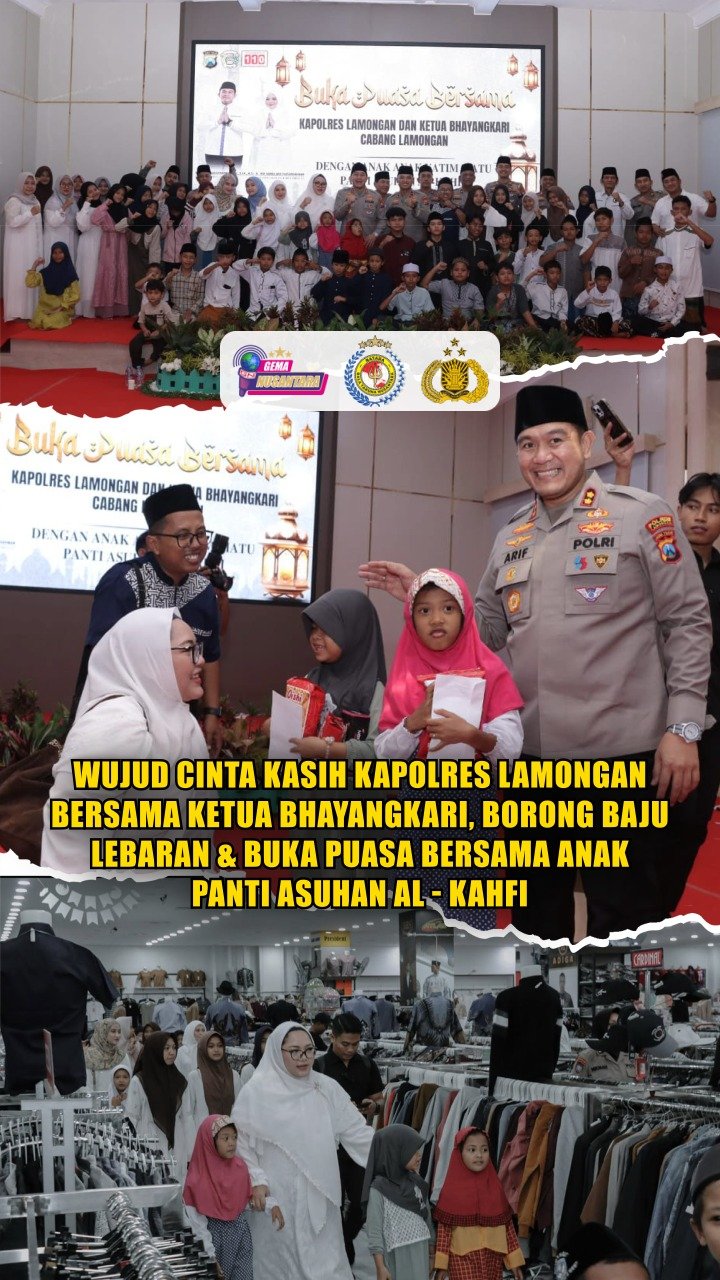 Wujud Cinta Kasih Kapolres Lamongan Bersama Ketua Bhayangkari, Borong Baju Lebaran & Buka Puasa Bersama Anak Panti Asuhan Al – Kahfi