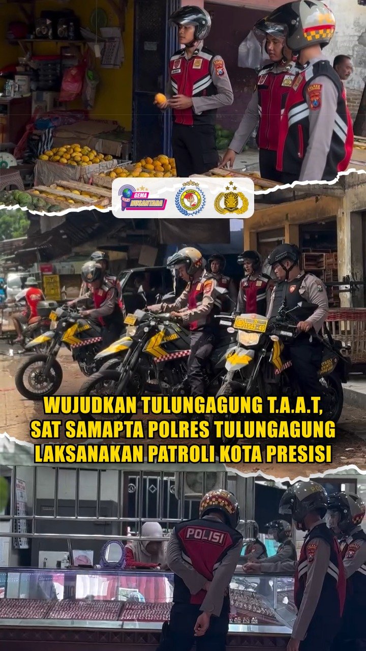 Tulungagung – Anggota Sat Samapta Polres Tulungagung Melaksanakan Patroli Kota Presisi di Wilayah Hukum Polres Tulungagung pada hari Minggu, 23 November 2025 WIB. Dengan rute titik lokasi yang menjadi aktivitas ramai masyarakat di wilayah Kab. Tulungagung.